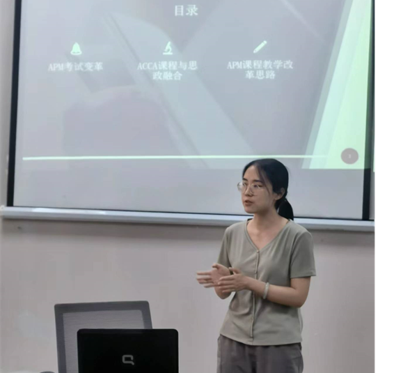 胡曼曼老师提出了关于Advanced Financial Management这门课程的建设性想法。她明确了AFM课程改革的思路,分享了案例教学的注意点,并在会上探讨了新的课堂模式,充分阐述了自己的想法。