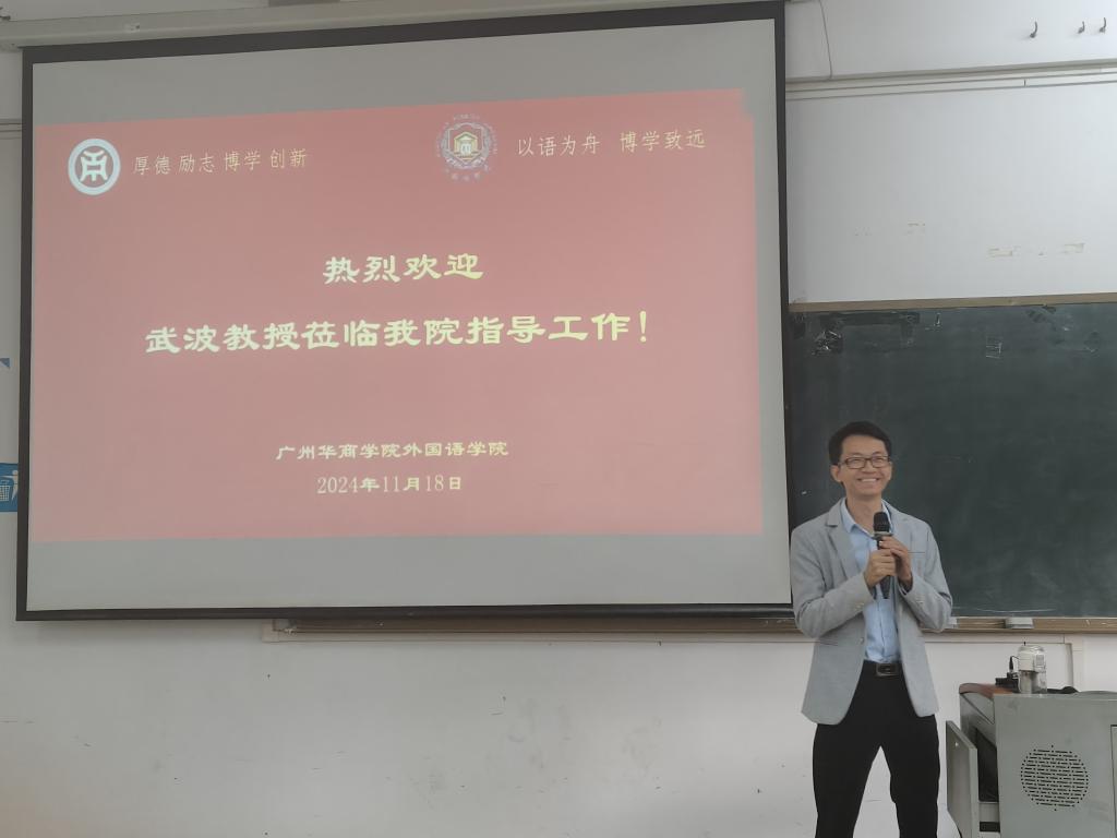 11月18日下午,mk外国语学院在广州校区励志楼B402开展“善学”讲坛第六期,学院领导、教师代表及学生代表参加了讲座。本次讲座由外国语学院副院长何顺发主持。